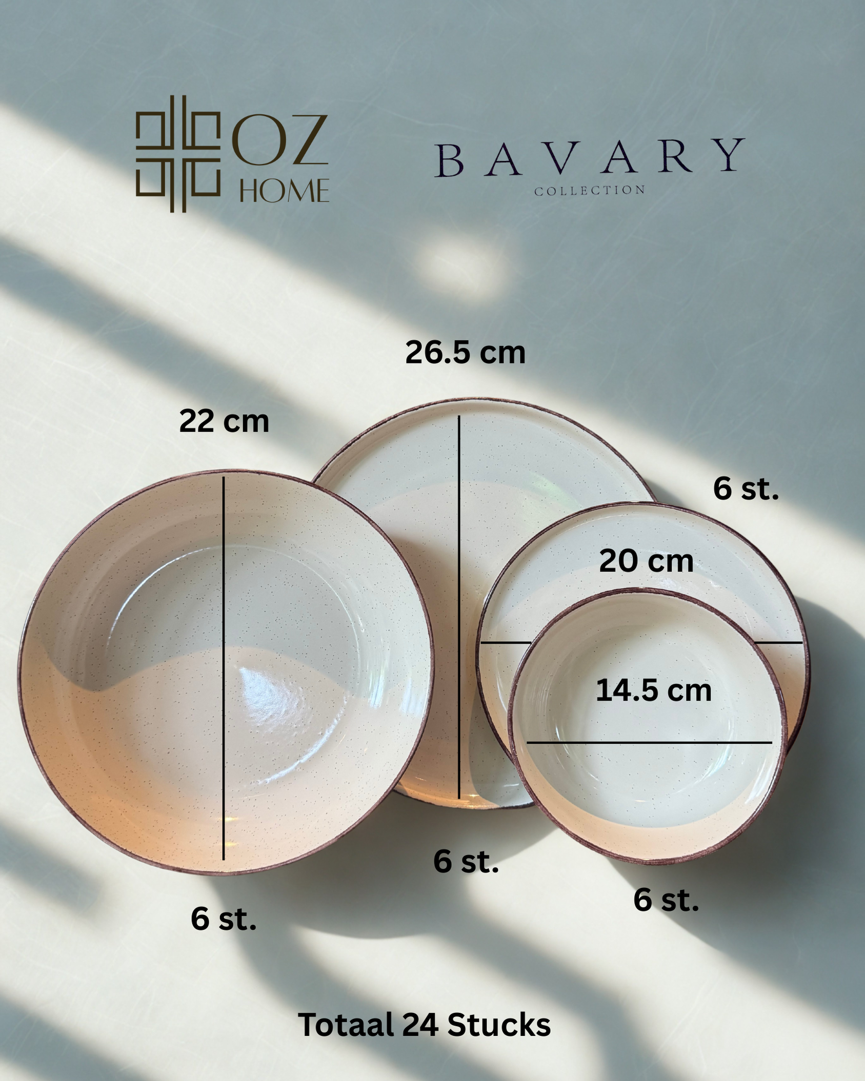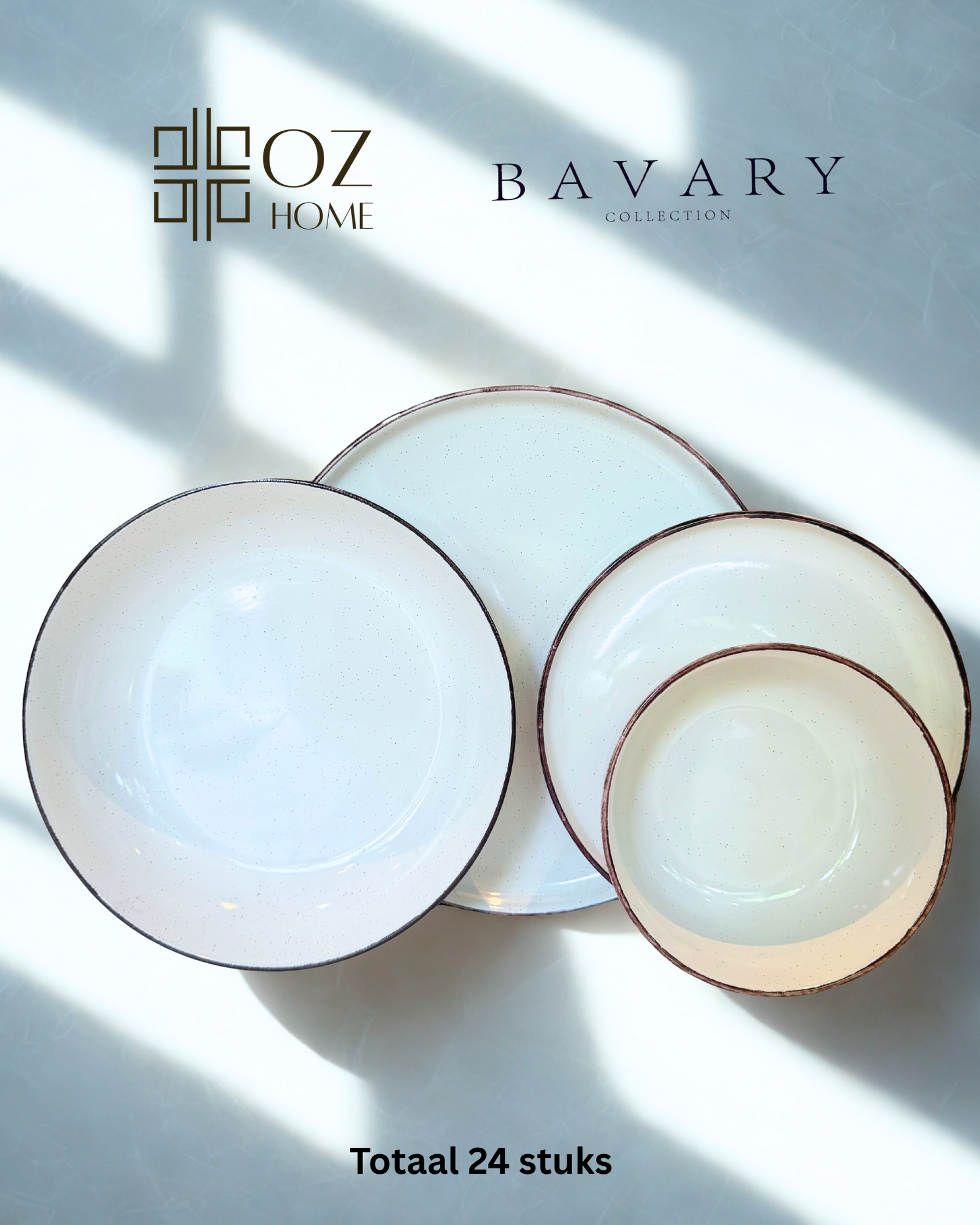 Breng een stijlvolle en natuurlijke uitstraling naar je eettafel met het BAVARY 24-delige parelmoer keramisch servies. Deze rustiek-modern vormgegeven serviescollectie is perfect voor dagelijks gebruik én feestelijke diners.